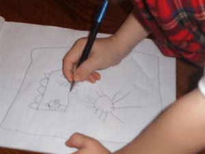 what you can’t tell from the picture is that three months ago he couldn’t hold a pencil, let alone hold it in that textbook “pinch,” just the way mrs. nelson taught him. three months ago that little boy was one of the only kids in his class who couldn’t make a pencil do anything, except wiggle where he didn’t want it to wiggle. three months ago the pediatrician called to tell me the boy “flunked” his fine-motor test, and recommended we take him to the specialists “for sensory-integration evaluation.”