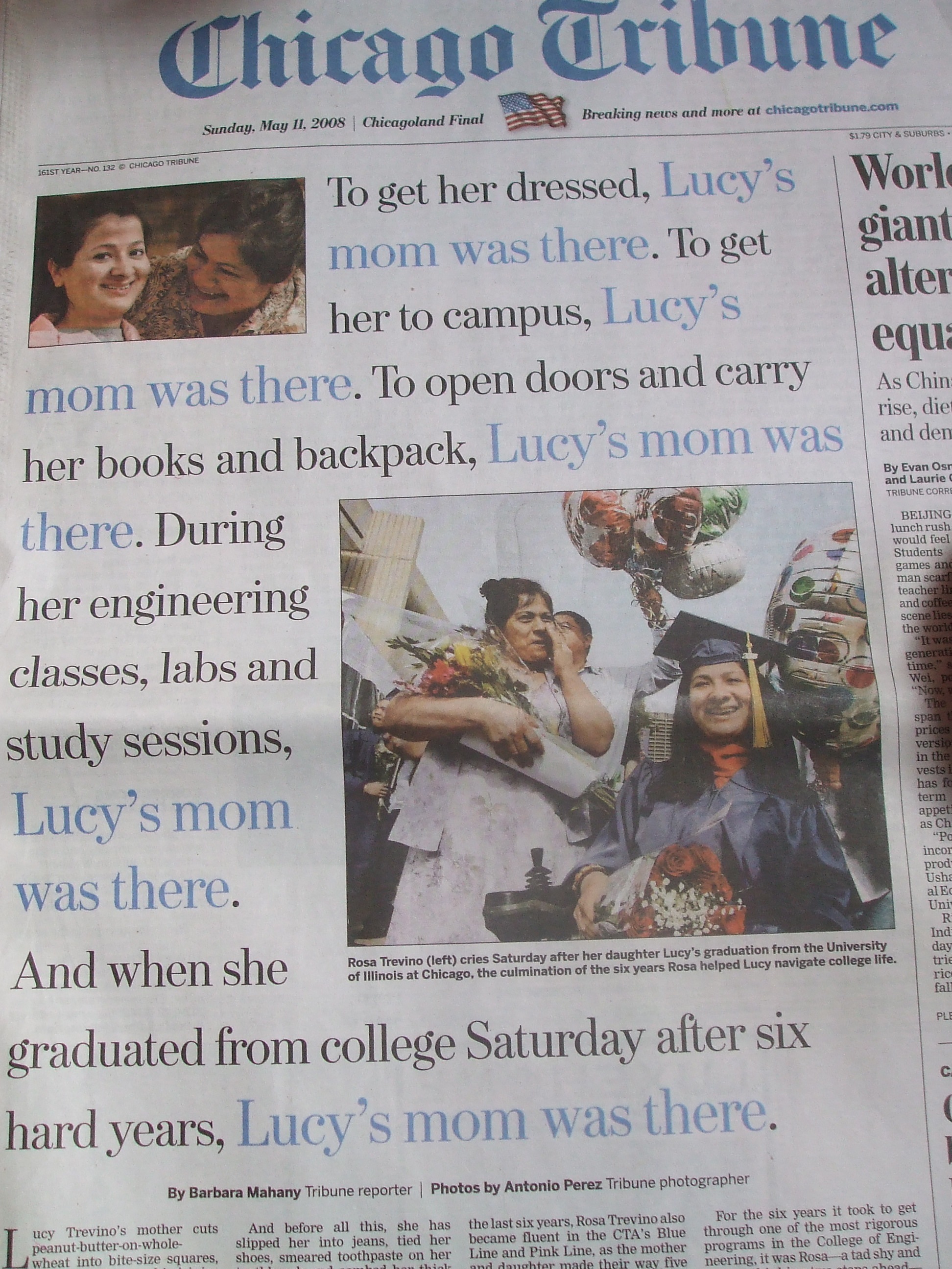 Lucy Trevino graduated Saturday from UIC with a degree in bioengineering, and the dean stopped the commencement of the Class of 2008 to tell of the Trevinos’ triumph. He barely made it, he said, without breaking into tears.