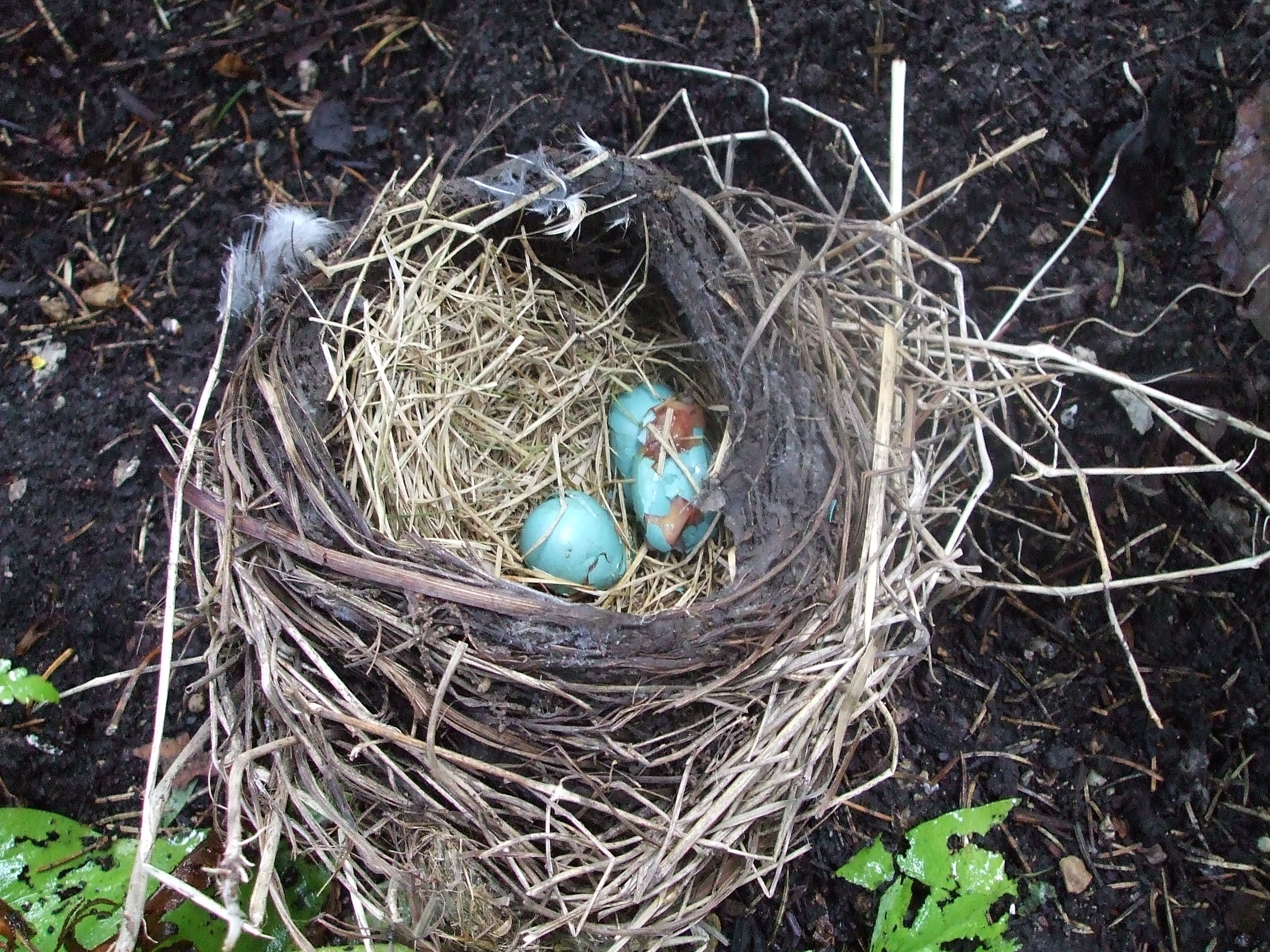 and so, of course, it was on my mother’s early morning rounds, the morning after that nasty noisy storm, that she found the nest and eggs that tumbled down.