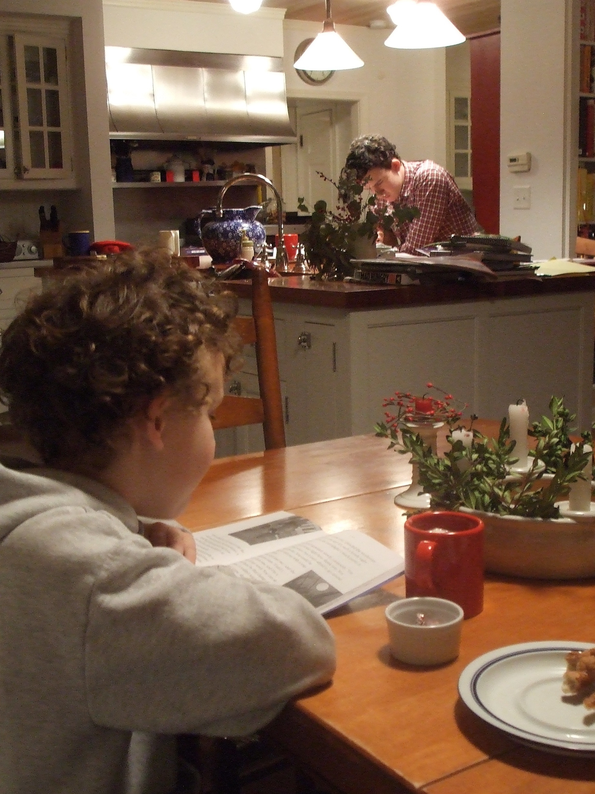 and so, the other evening as i looked up from washing dishes, i saw two boys at work, two boys with snacks and pages open wide, two boys whose worlds had momentarily aligned.
