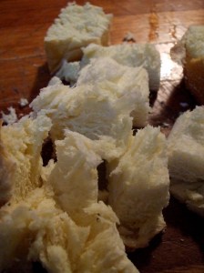 before i knew it, she had a knife in my hand, and i was cutting challah cubes. i grabbed the skillet, unwrapped the golden stick of butter, and let mama lu go wild. just like in the old days, in the days when i, no higher than her apron string, would stand to the side of her cincinnati stove, and watch her wield the cast iron and the wooden spoon as the butter oozed and bubbled. as she dumped in the hard-angled bread cubes. as it all spit and jumped and made a happy sizzle.