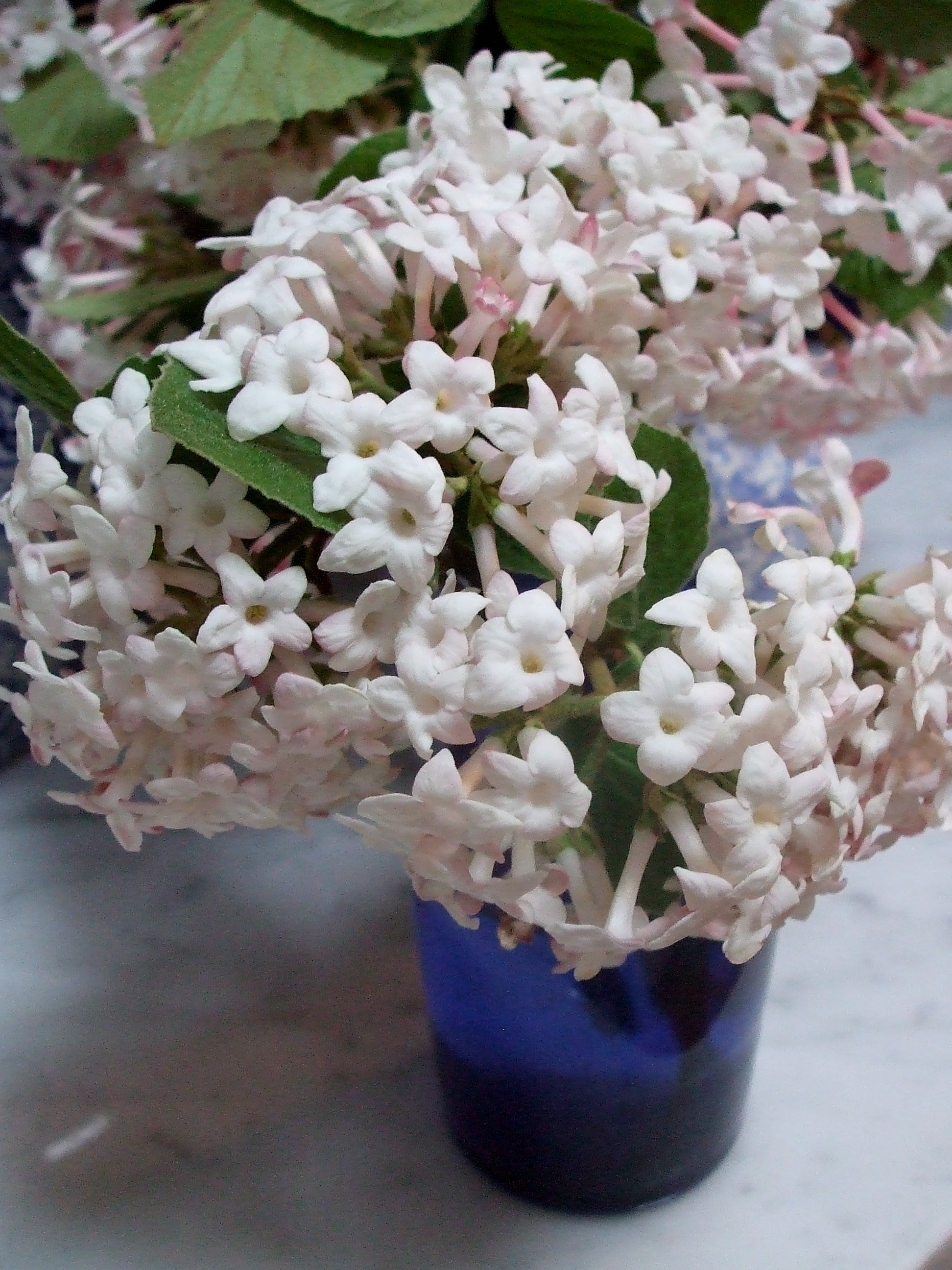 one last bit of homecoming joy: my mama, closest thing i know to a saint plenty of days, she came by to stock the fridge and leave two fat bouquets of viburnums on the countertop, right beside the kitchen sink, so when we walked in from the road trip, first thing i inhaled was the viburnum waltz, same as the one that made me swoon back on the west baden’s wrap-around porch. oh, i wish there was a smell button here, so i could waft it right by your nose. you’ll just have to close your eyes now, and pretend. try this: imagine what heaven would smell like, if it bloomed on a bush.