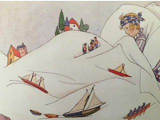 it was all quotidian enough—scarlet fever, chicken pox, mumps, measles, really nasty flu. i twice was sent to hospitals for IVs and a week of restitution, and so, given the spells in bed, i came to think the land of counterpane a most familiar terrain. (maybe, in part, it’s why i was drawn to being a pediatric nurse.) and, of course, i populated the contours of my bedclothes with a well-steeped storybook imagination––hills and vales and undulations, the nooks and crannies of my make-believe lilliputian chambermates: trolls and elves and sprites and sometimes an imaginary baby sister.
