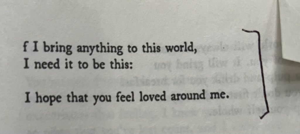 ah, sweet love, i indeed did think of you when i read that poem. i think you would love lots in the book. i’ve been thinking of you all week as i’ve dashed for here to there, and dodged whatever bug has invaded this old house. it shows no sign of leaving which is not according to plan. big hug.