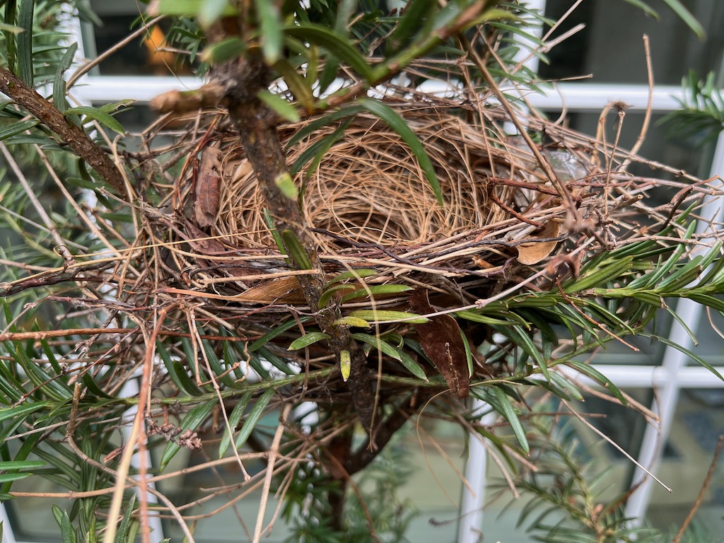 she’d been on the nest 15 days and counting. i delighted at the way she punctuated our shared workspace –– seemingly out of the blue –– by belting out an abbreviated string of song, as if she’d suddenly been overcome by the jubilance of nesting. any day now, i would have heard the wee peep-peep-peeps of nestlings, seen the blur of pointy beaks thrusting skyward for an airdrop of worm.