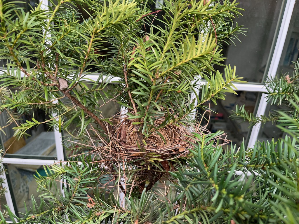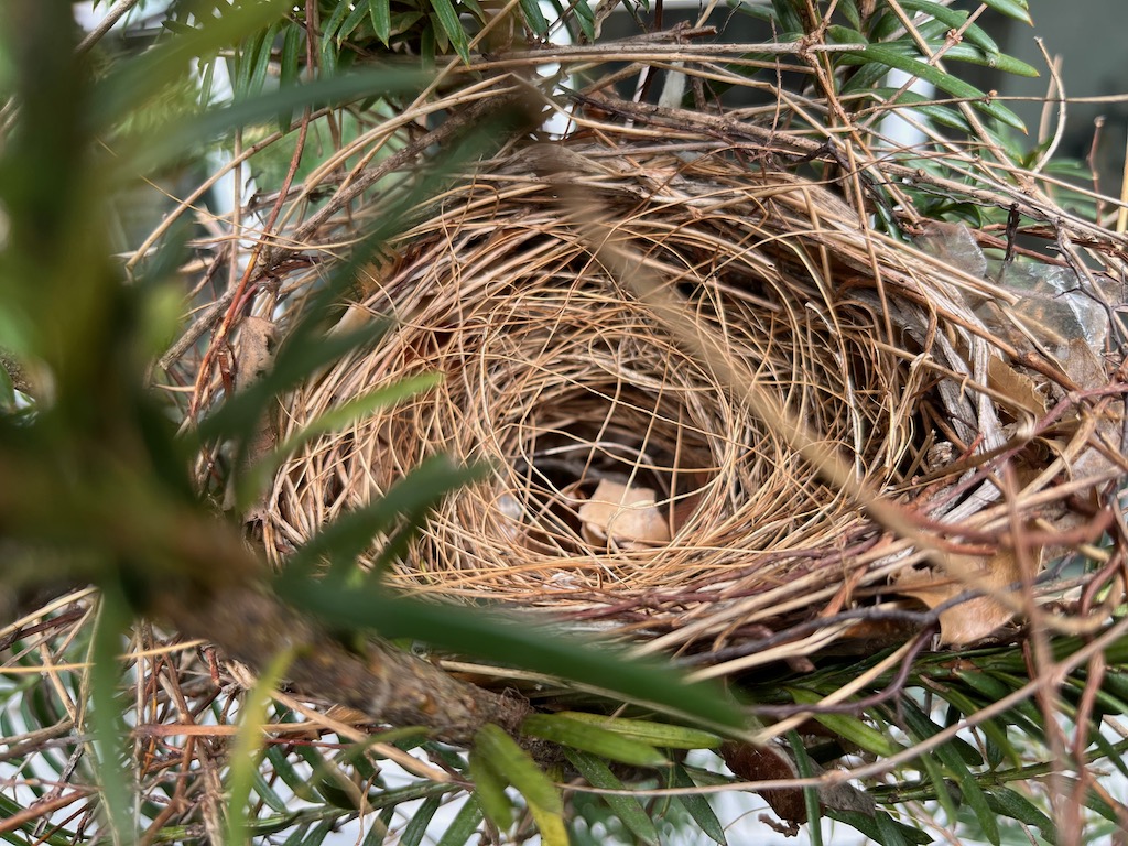 it hurt to sit here the first few days, the silence pounding in my ear. the absence of mama’s brown and red tail feathers protruding from the tuft of evergreen in which she so adeptly hid her nest.