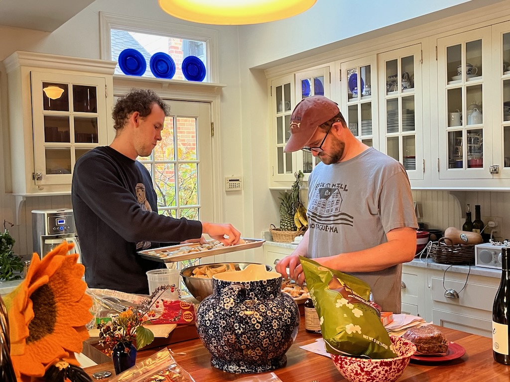 well, living as i am in a personal epoch of carpe diem, in which nearly every dawn i flutter open my eyes and unfurl a big fat gratitude prayer for making it to the sheer marvel of watching sunlight stream in, while simultaneously existing in this moment in history when good news is as infrequent as a meadow of daisies in november, the sheer joy of surprise, especially in the category guess-who’s-coming-to-dinner, is of the highest order.