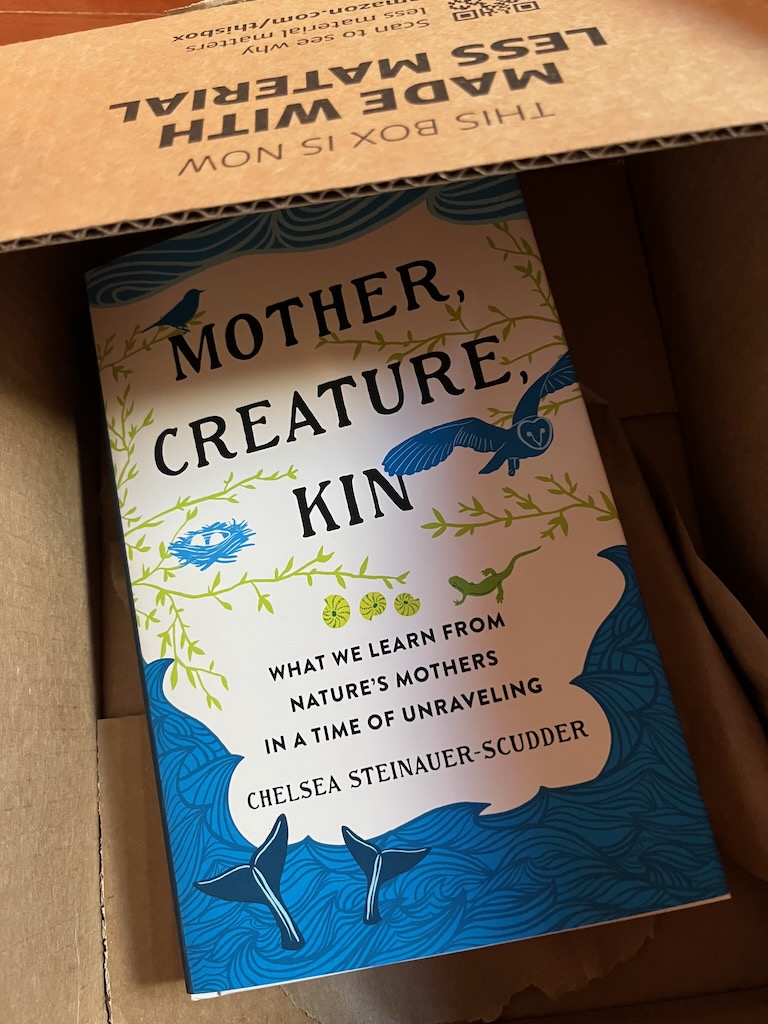her first book, Mother, Creature, Kin: What We Learn from Nature’s Mothers in a Time of Unraveling (Broadleaf Books), is what brought the thud to my front stoop. it’s due out april 8, but my copy landed yesterday. and it might be the cure i needed to lull me into spring.