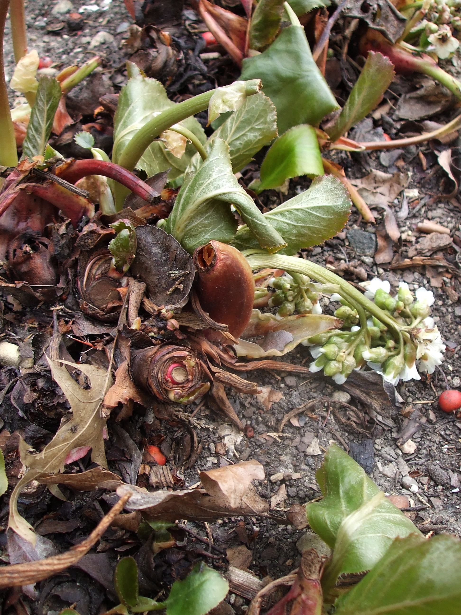 i have walked for miles, i have taken toll. i know now the litany of the dead, the blooms that will not be. star magnolia, petals browned like egg whites under too much butter, too much flame. only this is brown from freezing. daffodils, whole hosts, bowed in cold defeat, heads down, limp in dirt that might as well be burial mounds. bergenia, a woodland beauty sometimes known as pigsqueak, has lost its squeal. exhibit a, up above; the barnyard must be weeping.